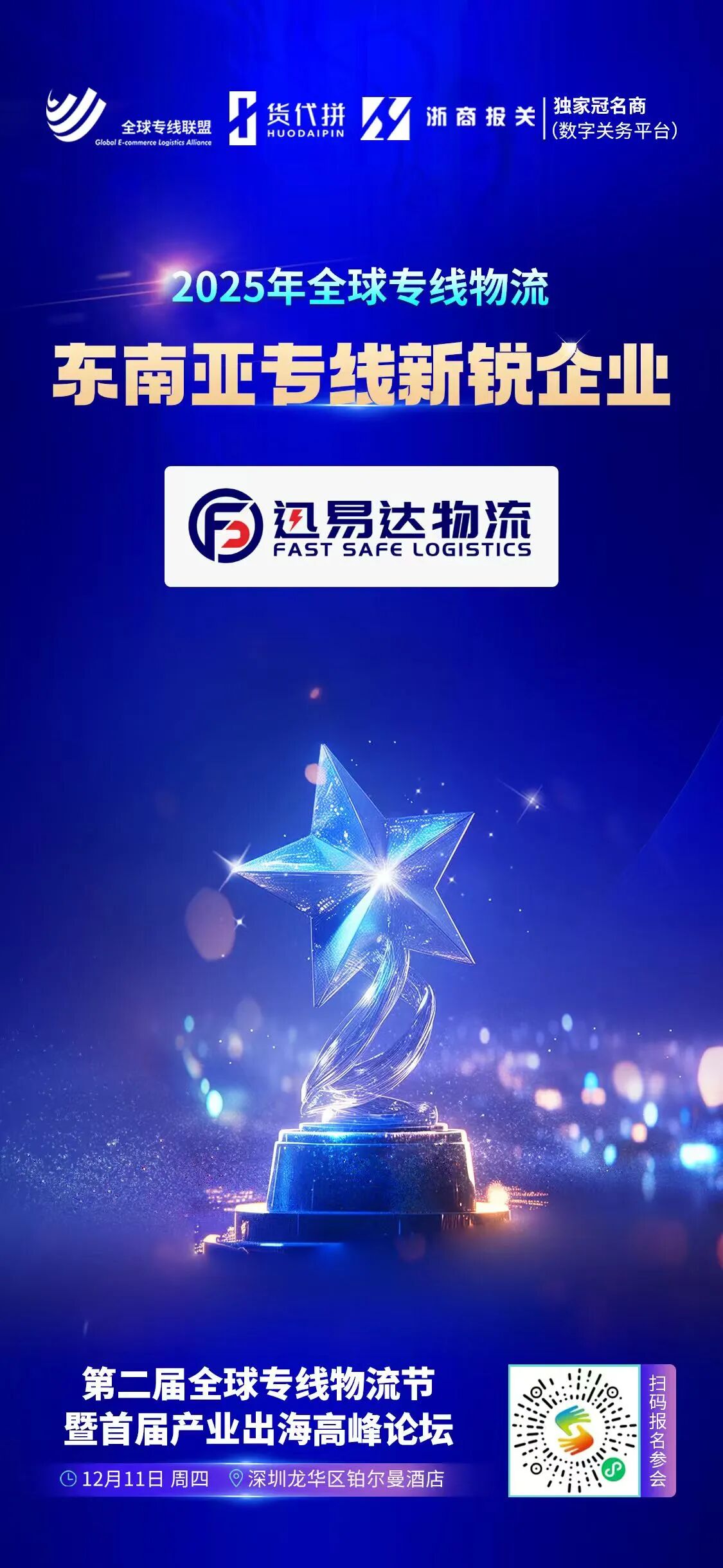 喜讯丨迅易达荣获《2025年全球专线物流 :东南亚专线新锐企业》奖项